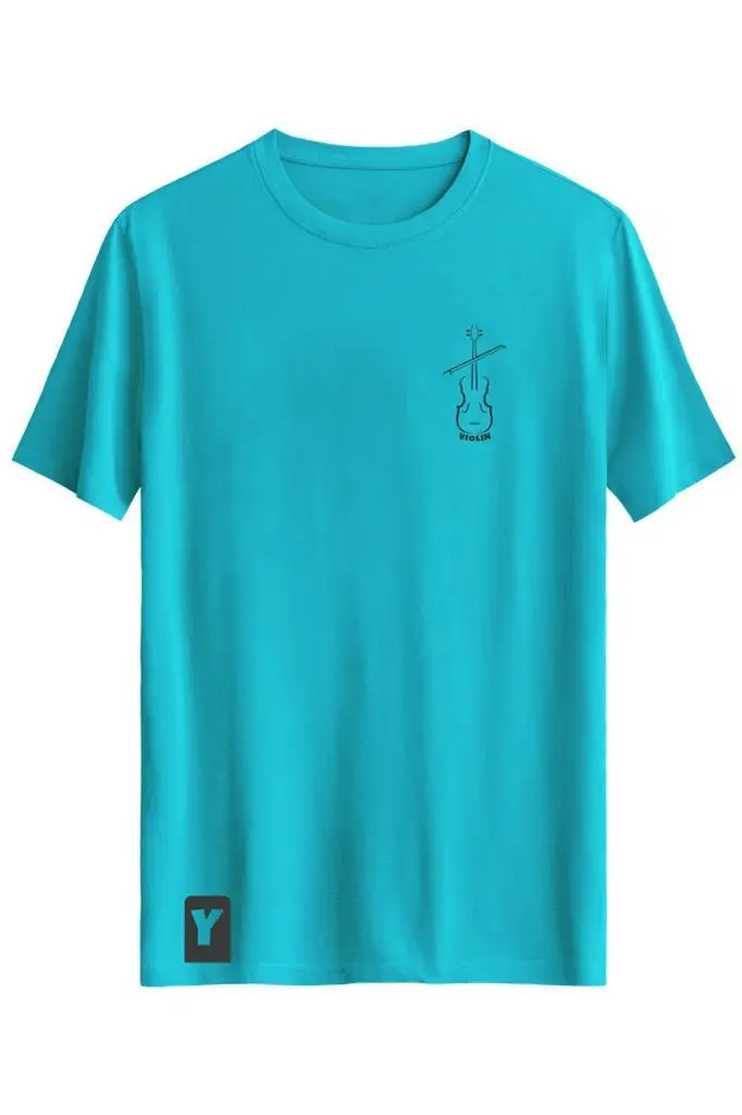 - Bellance Keman Baskılı Slim Fit Tişört Bisiklet Yaka T-Shirt Açık Mavi (BASİC) S
