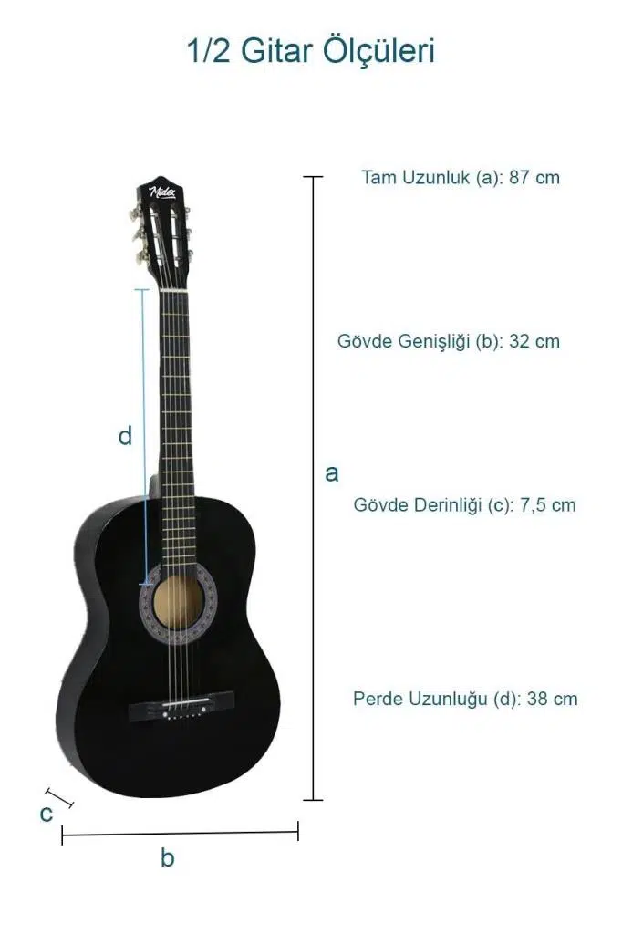 - Midex CG-34BK Kaliteli 34 İnç 1/2 Junior Çocuk Gitarı 4-8 Yaş Arası (Çanta Askı Pena Metod)