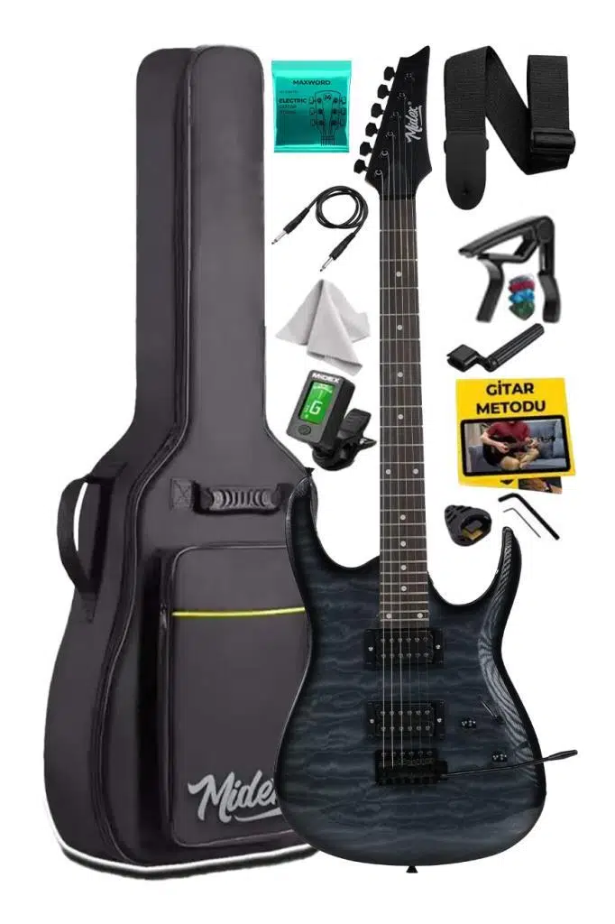 Midex Crade Grey, Rosewood klavyesi ile sağladığı konforlu çalınabilirliği, HH manyetiklerin güçlü ve sıcak tonlarıyla birleştirir. Zengin paket içeriği, gitaristlerin temel gereksinimlerini tek seferde karşılayarak ek bir yatırım ihtiyacını ortadan kaldırır. Özel desenli ve parlak renkli gövdesi, Tremolo köprü sistemi, gitarı hem görsel hem de performans açısından agresif müzik tarzlarına güçlü bir başlangıç yapmak isteyenler için mükemmel bir fiyat/performans enstrümanı haline getirir.
