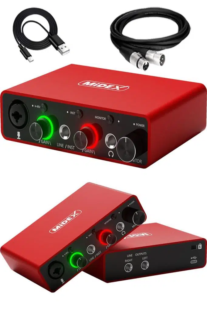 - Midex GLX-700RD XLR Üst Segment Usb Stüdyo Ses Kartı 2 Giriş 2 Çıkış 24bit/192kHz