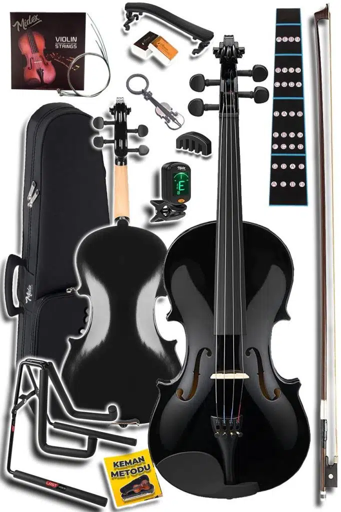 - Midex HGA44BK-STYS Full Siyah Set Keman 4/4 (Yastık Stand Tuner Susturucu Yedek Tel Reçine Çanta Yay)