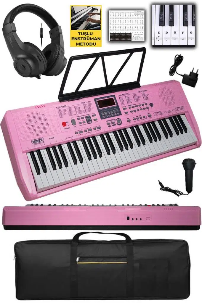 - Midex PS-1800BK-H 61 Tuşlu Kaliteli Org Dijital Ekranlı Kulaklık Çanta Notalık Adaptör Sticker Öğrenim Metodu