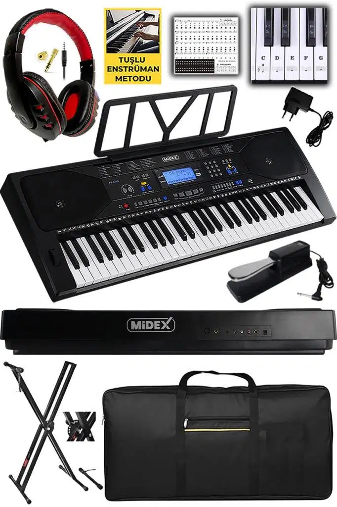 - Midex PS-4500KSP Tuş Hassasiyetli 61 Tuşlu Org Sustain Pedallı USB MP3 (Pedal Stand Kulaklık Çanta Notalık Metod)