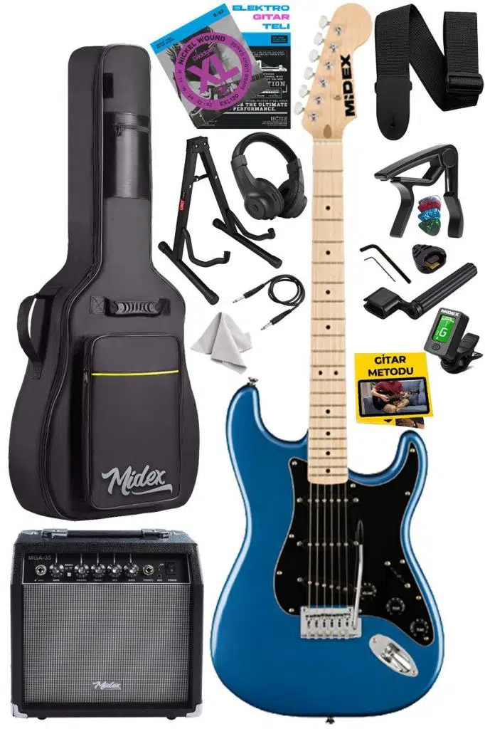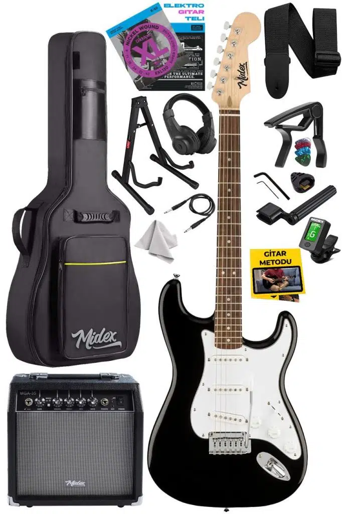 Midex RPH-30RD-35AMP Gül Klavye Strat Kasa SSS 35W Elektro Gitar Seti
