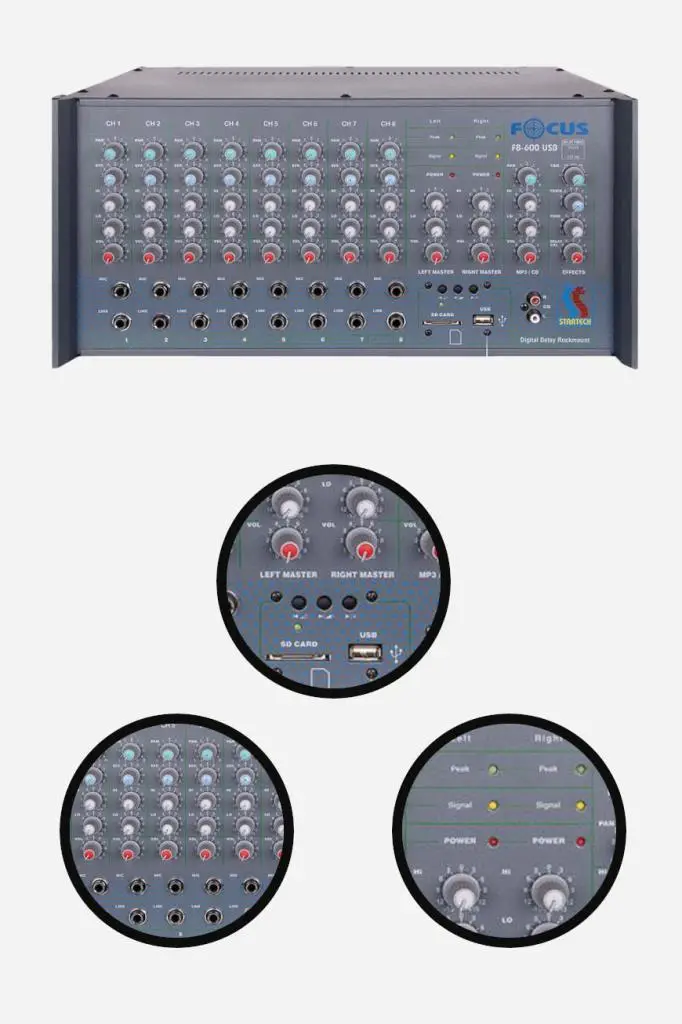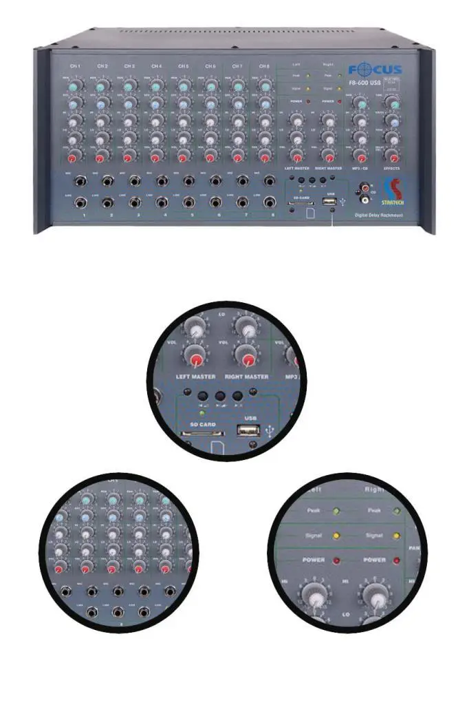 - Startech Focus F8-600 USB 2x300W 8 Kanal Stereo Cami Anfisi Power Mixer Amfi